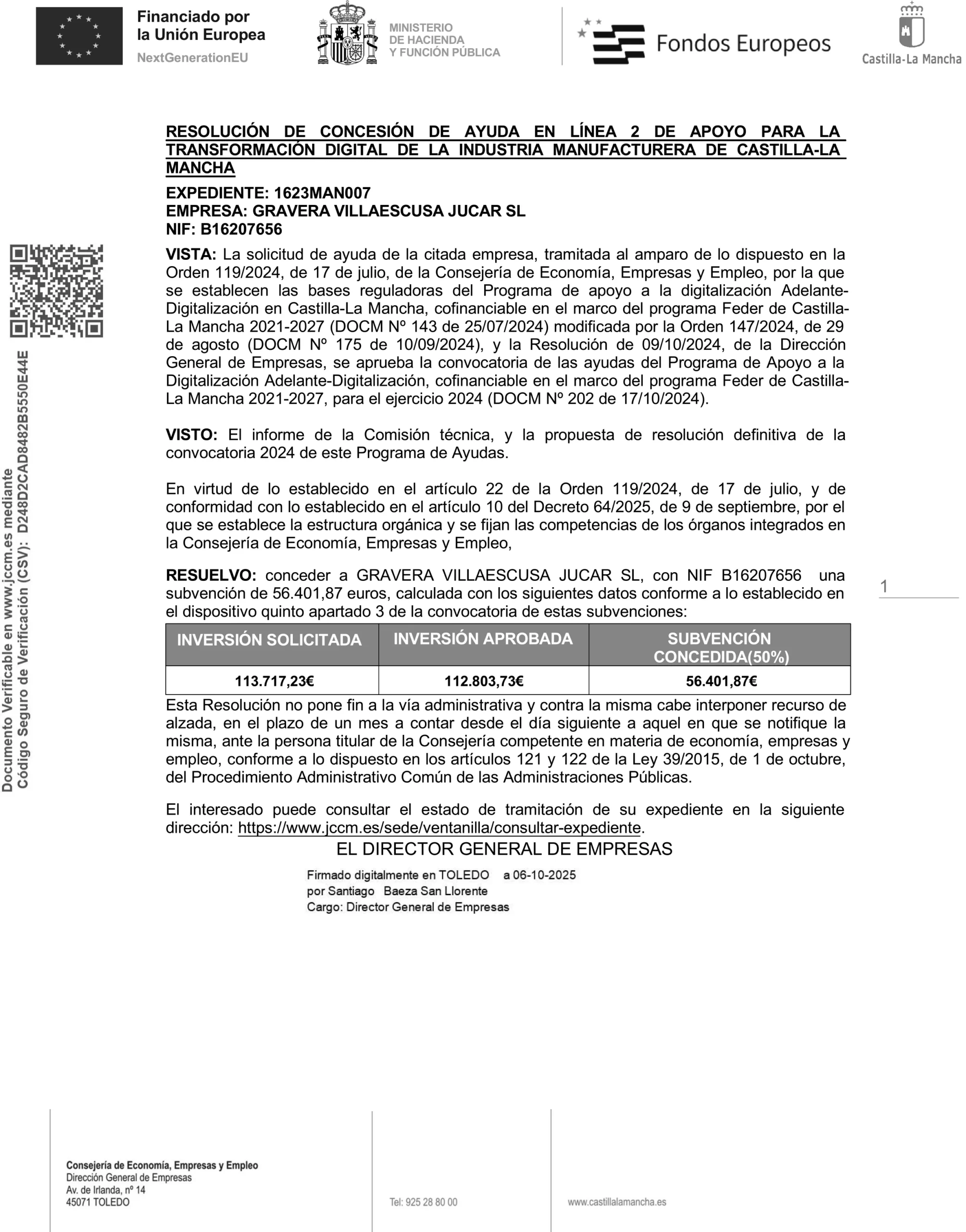 Grupo Alvaro Villaescusa > Resolución de concesión de ayuda en línea 2 de apoyo para la transformación digital de la industria manufacturera de Castilla-La Mancha